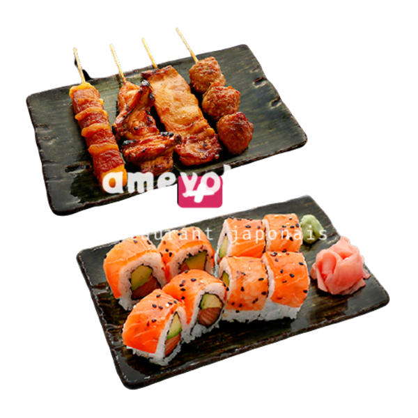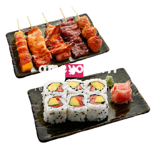 Accompagnements: 4 Brochettes OU 4 Nêms OU 6 Gyozo OU 4 Tempura crevettes